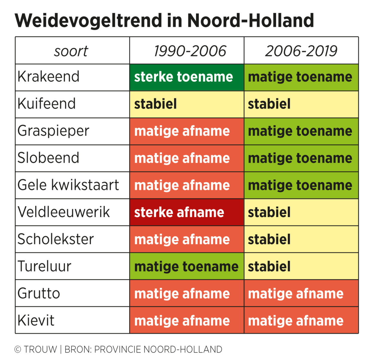 In een nog niet gepubliceerd verslag over 2019 van de monitoring van weidevogels in Noord-Holland Zuid wordt geconcludeerd dat in het gebied de grutto ‘in de meeste polders redelijk stabiel is, of licht toeneemt’. Voor de kievit en de scholeksters was het aantal broedparen stabiel of licht dalend.